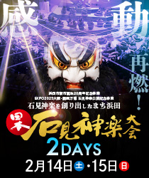 石見神楽を創り出したまち 浜田の夜明け舞をぜひご堪能ください。