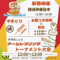 日本一POPでアートな道の駅・ゆうひパーク三隅の2026年新春神楽! 浜田市三隅町の岡﨑神楽社中さんによる石見神楽上演です。 家族で楽しめる”餅つき体験”も同時開催♪